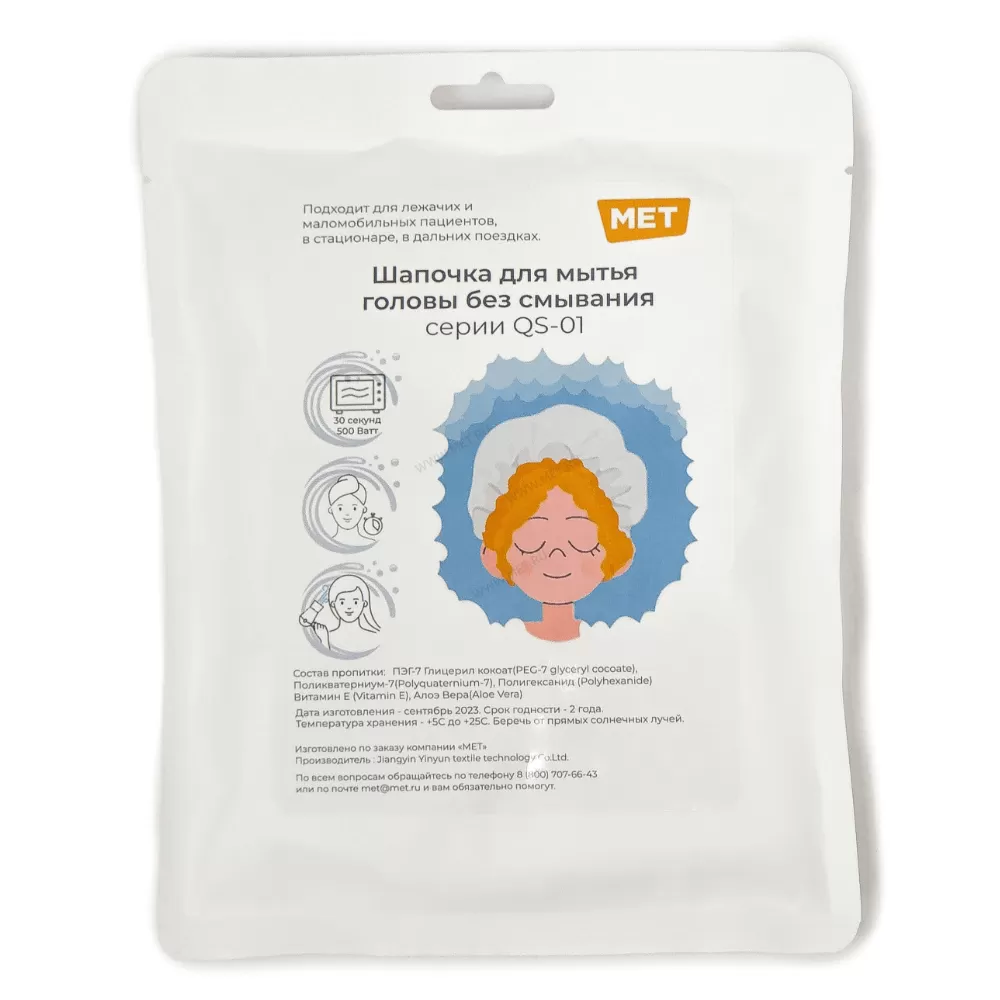 Шапочка MET для мытья головы без смывания серии QS-01 - незаменимый помощник в регулярном уходе за лежачим человеком. Не требует смывания водой. Также она пригодится каждому в дороге, в стационаре, при травмах, в роддоме, на даче, если в доме отключат воду, при дальних поездках, походах. Это идеальное решение всякий раз, когда нет возможности принять душ.