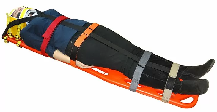 Щит выполнен в виде доски из полиэтилена с отверстиями. Отверстия используются как ручки для переноски щита, а также с помощью них и ременной системы обеспечивается фиксация пациента на щите.
