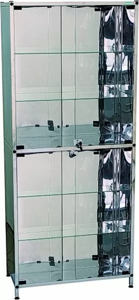 - Имеет два отделения, каждое из которых оборудовано двумя стеклянными полками, двумя дверками (стекло или нержавеющая ), укомплектовано замком.