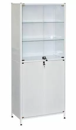 - Шкаф имеет два отделения, каждое из которых имеет две двери с замком, верх-стекло/низ-металл.