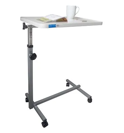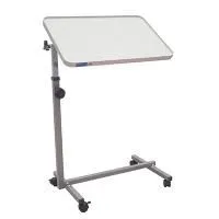 Благодаря регулировке по высоте и углу наклона столешницы, каждый пользователь сможет настроить его с учетом своих индивидуальных потребностей. Столешница выполнена из ламинированного ДСП, что придает столику не только эстетичный вид, но и делает его практичным и долговечным. Специальный пластиковый обод не позволит скатываться предметам на столе. Основание модели имеет 4 колеса, два из них оснащены тормозами для фиксации столика в необходимом положении. Такой прикроватный столик может использоваться как в домашних условиях, так и в медицинских учреждениях.