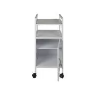 - Столик состоит из панели и шкафчика с полкой и установлен на мебельные колёса диаметром 50 мм.