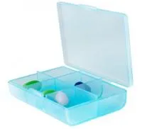 Таблетница имеет небольшой вес и размеры, её можно взять с собой, она не занимает много места в кармане.