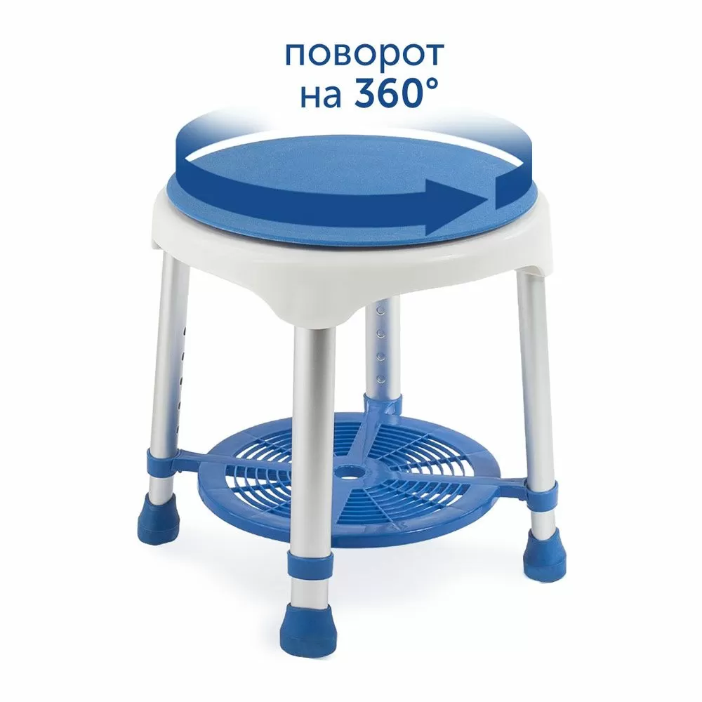 Санитарный стул для ванны с вращающимся сиденьем 10502 служит для облегчения принятия водных процедур. Универсальное изделие можно использовать в душе, ваннах подходящего размера или ставить рядом с ванной.
