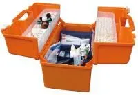 Серия УМСП-1-Пм/2 представляет собой пластиковые саквояжи из высокопрочного пластика, снабженные перегородками, вкладышем-ячейкой и ложементами под ампулы, обеспечивающими удобство размещения всего перечня медицинский изделий и лекарственных средств. Липкая аппликация с наименованиями лекарственных средств, поможет определить место каждому лекарству и без труда ориентироваться в ампулах.
