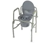 Когда человек ослаблен из-за болезни или реабилитации, ему бывает трудно дойти до туалета. Тогда на помощь приходят санитарные кресла-туалеты – это металлическая рама на ножках с сиденьем и съемным ведром/судном. По своей конструкции такие переносные туалеты могут быть цельными (статичный монолитный каркас) или складными (каркас на шарнирах может складываться).